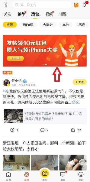 进入58同城后,点击下面的【发现】然后点击顶部轮播进入活动。