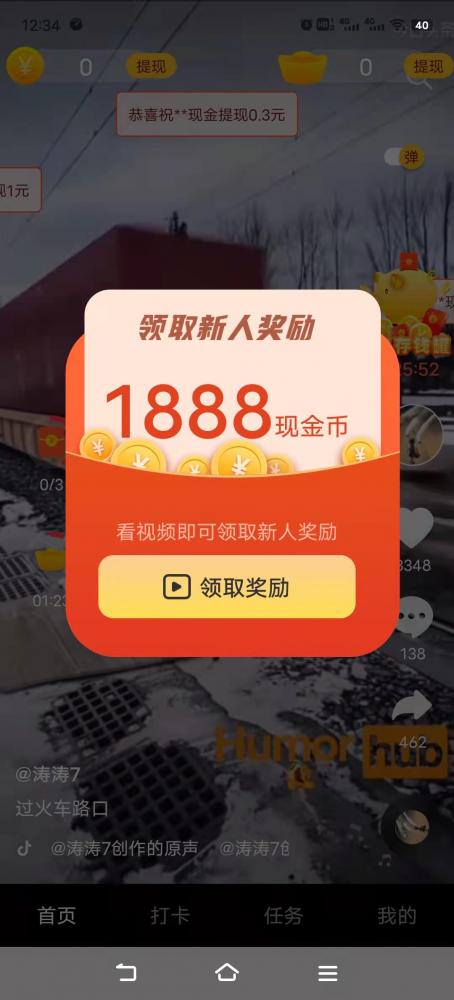 每天看广告8次完成签到,签到3天领取2元,签到30天领取30元。说句老实话啊,这个平台单靠看视频获得奖励是挺少的,对比其它3毛平台这个算是比较小气了。