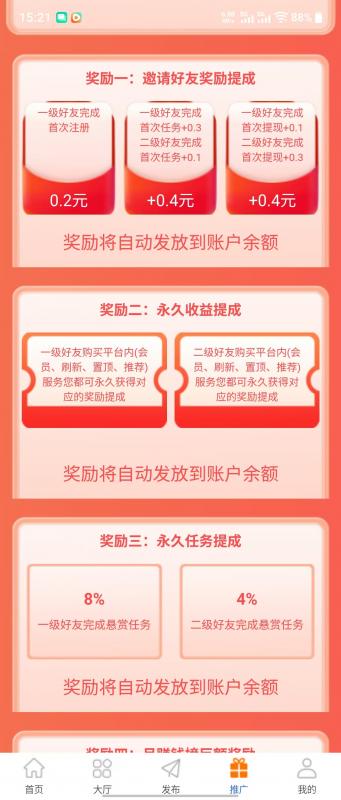 免费下载 任务哨 软件大小:53.27MB 开发者:版本1.0.10 提现门槛:2元 说明:平台任务类型多 下载量:11次 更新时间:2026-03-19 15:18 扫描二维码下载 #任务哨APP截图 #任务哨APP简介 趣多米APP改名为任务哨,新平台,发布任务免费送任务哨APP月卡会员(价值58元)。任务哨APP邀请好友奖励:1、邀请好友注册奖励0.2元,完成首次任务奖励0.3元,首次提现奖励0.1元。2、一级好友完成悬赏任务可获得8%分成,二级好友4%。看了一下规则,发现推广奖励并不高,优势就是平台高价任务佣金高,很多简单的任务很快就能做完,佣金也不会低,对于商家来说,可发布的任务类型多,限制较少。美中不足是下载APP速度慢了点,希望官方后续能优化一下。